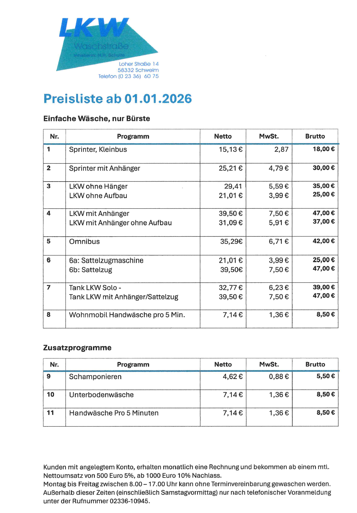 Aktuell Preisliste unserer